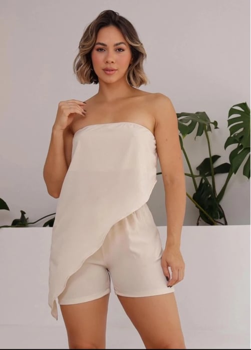 Conjunto Divo tomara que caia em seda leve e elegante. A escolha perfeita pra arrasar no pós-praia com estilo e conforto!