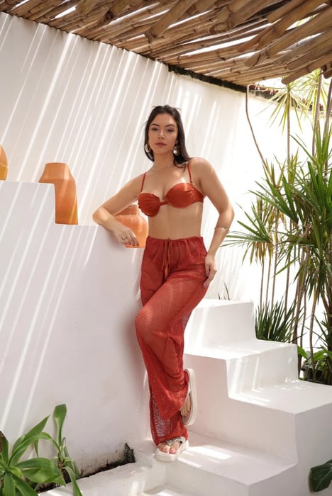Calça Telada Búzios modelo leve e fresquinho, no tecido arrastão, com transparência e caimento perfeito.