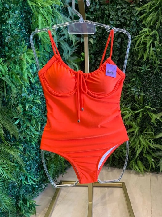 Maiô Gardênia em poliamida gloss UV50+: forrado, com bojo, aro e alças ajustáveis e proteção solar. Une elegância e conforto .