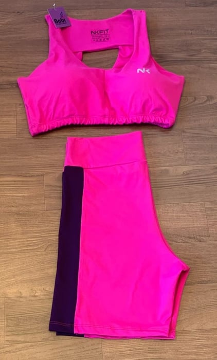 Conjunto fitness plus size em Poliamida com bojo removível, cós alto e recortes laterais que modelam e valorizam o corpo com firmeza e estilo.