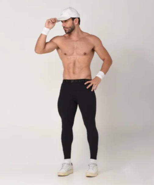 Legging masculina de poliamida com alta compressão e ajuste firme. Ideal para treinos de performance e mobilidade total.