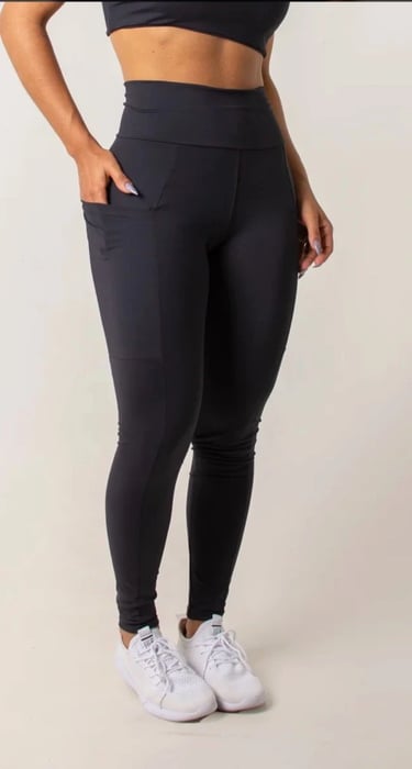 Legging em poliamida de alta compressão com bolsos laterais e cós largo. Modelo que valoriza o corpo, garante conforto e firmeza nos treinos!