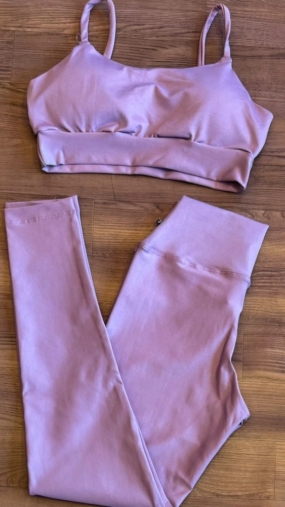 Conjunto fitness ideal para treinos com estilo e conforto. Tecido macio com um suave brilho, modelagem que valoriza o corpo. Perfeito para você que não abre mão de qualidade.