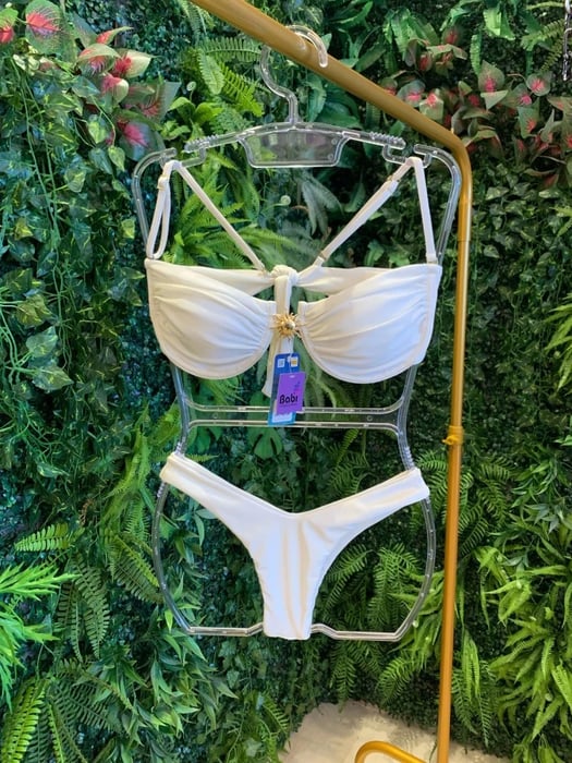 Biquíni estruturado com bojo e detalhe metálico no centro, alças ajustáveis e calcinha asa delta. Modelagem moderna, valoriza as curvas com elegância e conforto