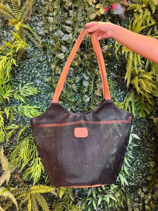 Bolsa estruturada, resistente e impermeável, ideal para uso em ambientes úmidos como a praia ou piscina.